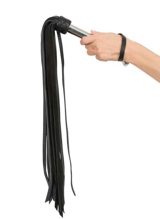 Chicote profissional robusto, fabricado em pele com pega de aço inoxidável.