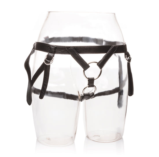 Tem duas argolas para acoplar dildos e vibradores com ventosa
